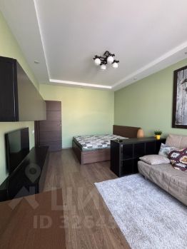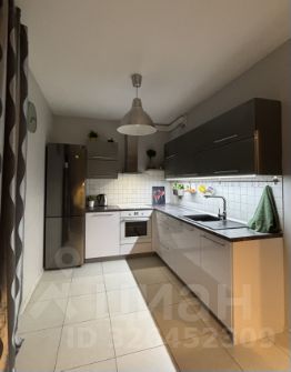 * огромная однушка площадью 45 м (кухня - 12,9 м, комната - 17,6 м, ванная - 4,6 м, прихожая - 7,5 м, лоджия - 4,3 м);