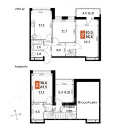 Площадь при покупке 83.5 кв, было сделано перекрытие второго света и получили дополнительные метры, квартира стала 114 кв.