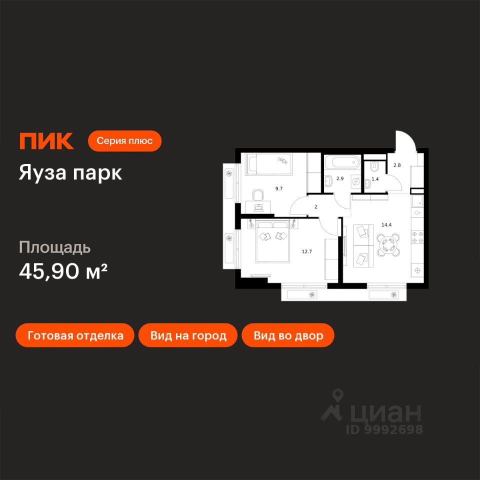 Продаётся 2-комн. квартира площадью 45,9 кв.м на 3 этаже 24 этажного дома (Корпус 14, Секция 1) проекта ПИК Яуза парк. Светлый просторный подъезд на уровне земли, функциональная планировка, большие окна, c отделкой.