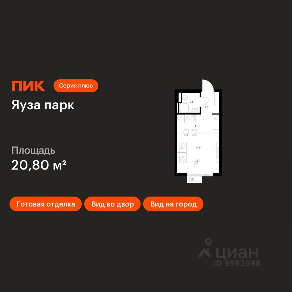 Продаётся квартира-студия площадью 20,8 кв.м на 21 этаже 24 этажного дома (Корпус 14, Секция 1) проекта ПИК Яуза парк. Светлый просторный подъезд на уровне земли, функциональная планировка, большие окна, c отделкой.