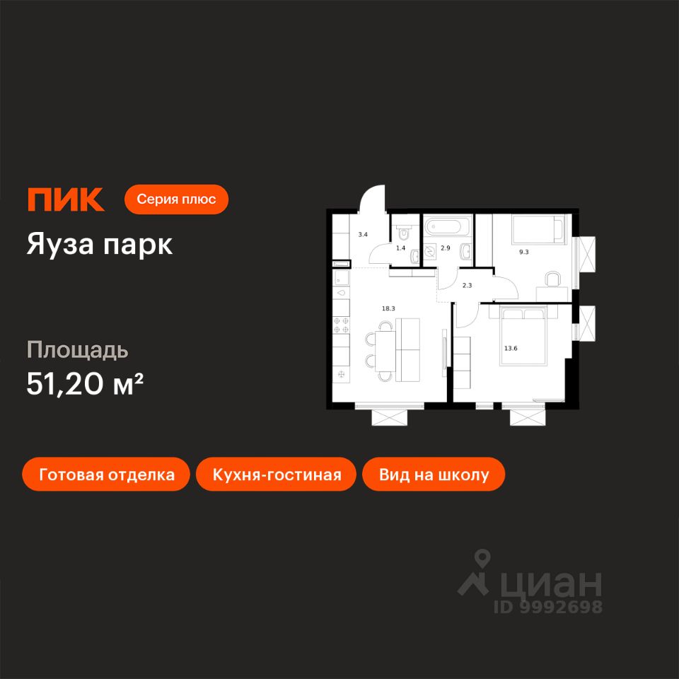 Продаётся 2-комн. квартира площадью 51,2 кв.м на 18 этаже 24 этажного дома (Корпус 6, Секция 1) проекта ПИК Яуза парк. Светлый просторный подъезд на уровне земли, функциональная планировка, большие окна, c отделкой.