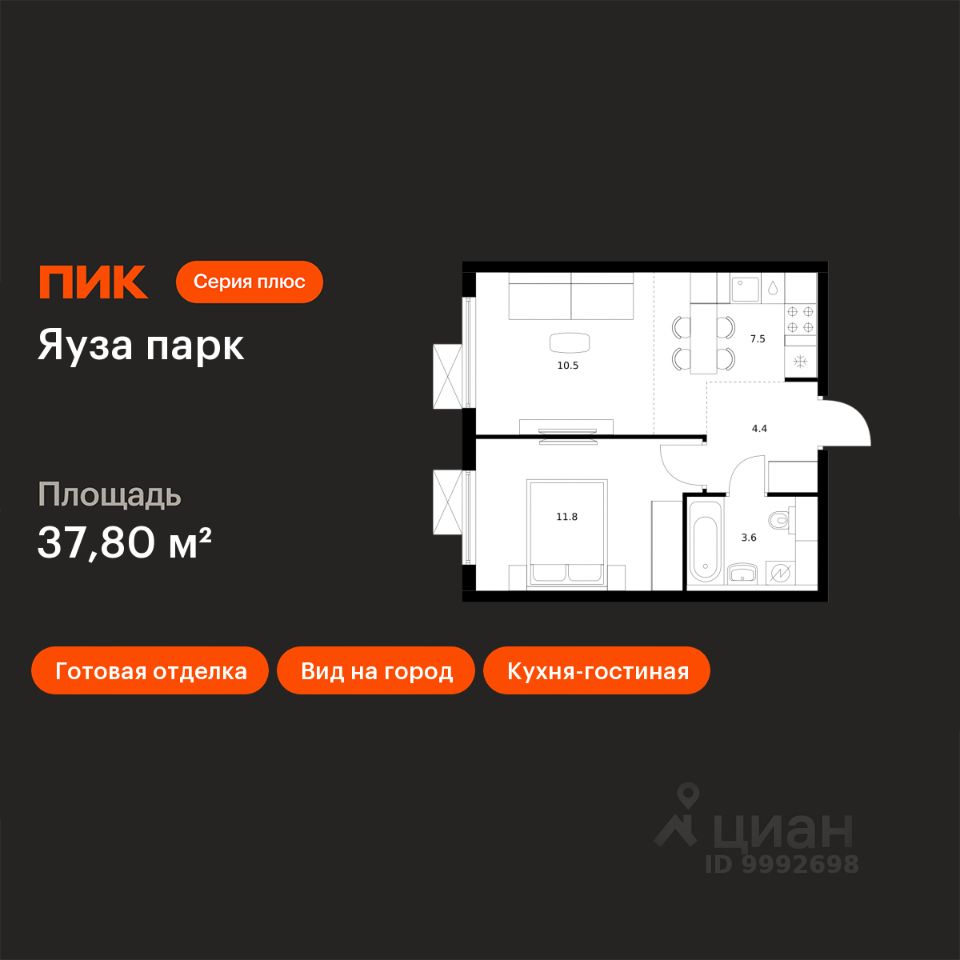 Продаётся 1-комн. квартира площадью 37,8 кв.м на 19 этаже 24 этажного дома (Корпус 6, Секция 1) проекта ПИК Яуза парк. Светлый просторный подъезд на уровне земли, функциональная планировка, большие окна, c отделкой.