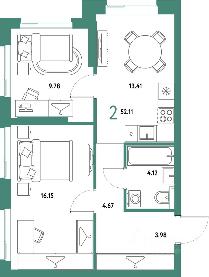 Продаётся 2-комнатная квартира в строящемся доме (Дом Васнецов), срок сдачи: IV-кв. 2027, общей площадью 52.11 кв.м., на 4 этаже. Многоэтажные жилые дома с объектами инфраструктуры, расположенные по адресу: Московская область, г.о. Мытищи, г.Мытищи, мкр. 18Б, ул. Комарова.