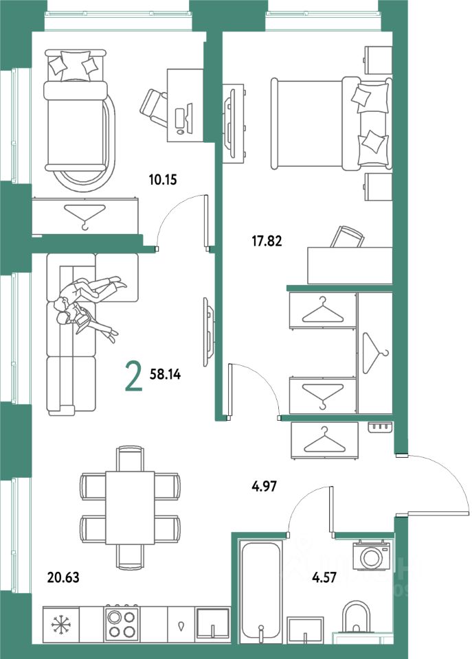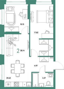 Продаётся 2-комнатная квартира в строящемся доме (Дом Васнецов), срок сдачи: IV-кв. 2027, общей площадью 58.14 кв.м., на 4 этаже. Многоэтажные жилые дома с объектами инфраструктуры, расположенные по адресу: Московская область, г.о. Мытищи, г.Мытищи, мкр. 18Б, ул. Комарова.