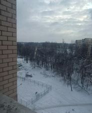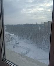1). Панорамный вид из окон на зелёную дворовую зону, парк и далее на солидные жилые дома.