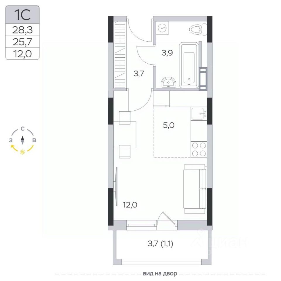 Продаётся студия в сданном доме (Корпус 14), срок сдачи: IV-кв. 2023, общей площадью 25.7 кв.м., на 3 этаже.