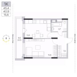 Продаётся 1-комнатная квартира в сданном доме (Корпус 13), срок сдачи: IV-кв. 2023, общей площадью 40.9 кв.м., на 6 этаже.