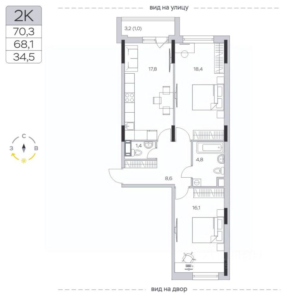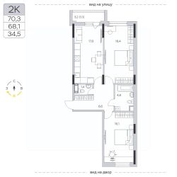 Продаётся 2-комнатная квартира в сданном доме (Корпус 13), срок сдачи: IV-кв. 2023, общей площадью 68.3 кв.м., на 9 этаже.