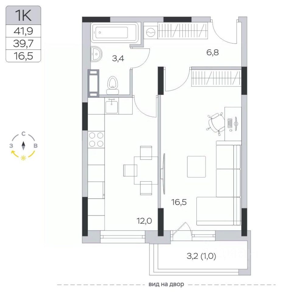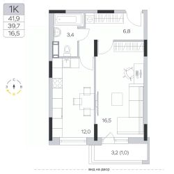 Продаётся 1-комнатная квартира в сданном доме (Корпус 13), срок сдачи: IV-кв. 2023, общей площадью 39.7 кв.м., на 9 этаже.