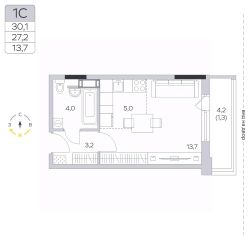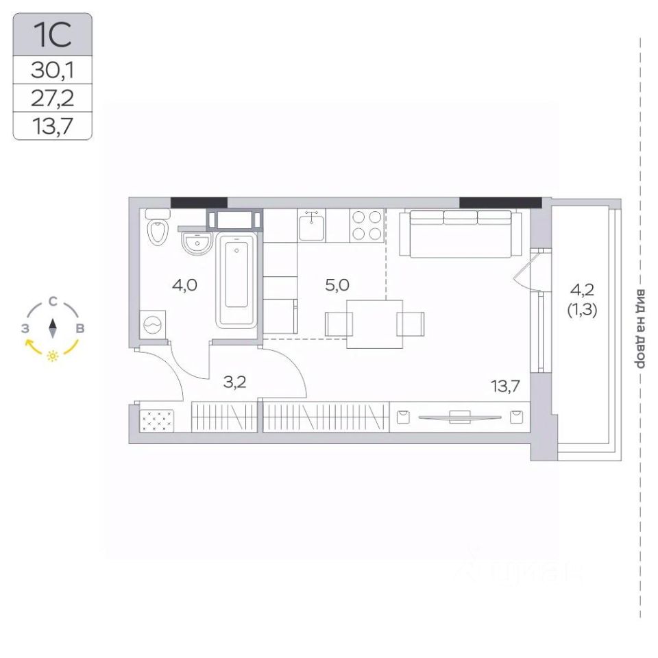 Продаётся студия в сданном доме (Корпус 13), срок сдачи: IV-кв. 2023, общей площадью 27.4 кв.м., на 6 этаже.