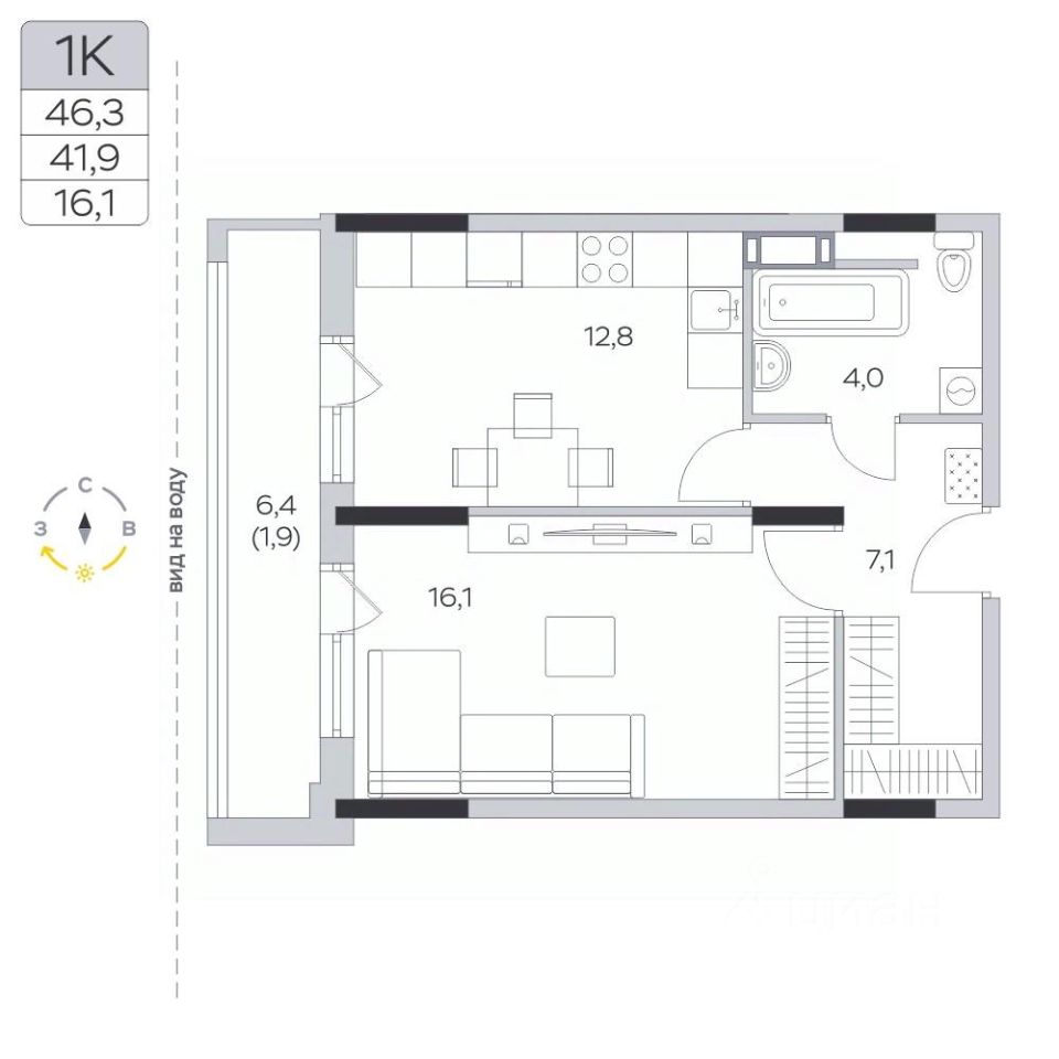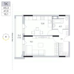 Продаётся 1-комнатная квартира в сданном доме (Корпус 13), срок сдачи: IV-кв. 2023, общей площадью 42 кв.м., на 7 этаже.