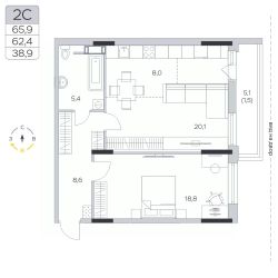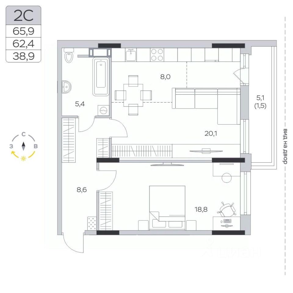 Продаётся 1-комнатная квартира в сданном доме (Корпус 13), срок сдачи: IV-кв. 2023, общей площадью 62.4 кв.м., на 7 этаже.