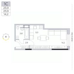 Продаётся студия в сданном доме (Корпус 13), срок сдачи: IV-кв. 2023, общей площадью 25.8 кв.м., на 8 этаже.