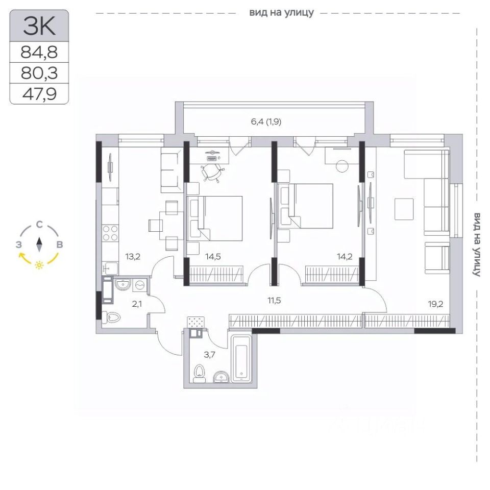 Продаётся 3-комнатная квартира в сданном доме (Корпус 15), срок сдачи: III-кв. 2024, общей площадью 80.4 кв.м., на 7 этаже.