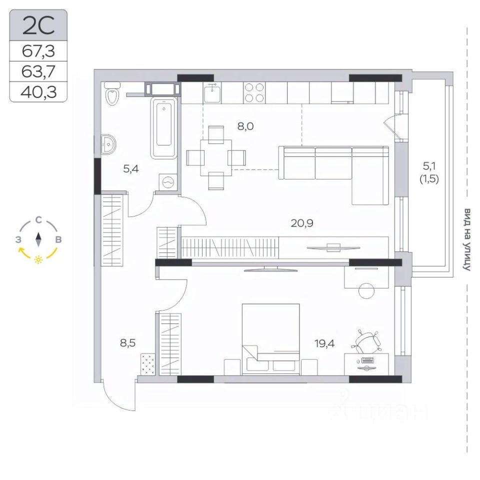 Продаётся 2-комнатная квартира в сданном доме (Корпус 15), срок сдачи: III-кв. 2024, общей площадью 63.5 кв.м., на 4 этаже.