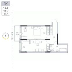 Продаётся 1-комнатная квартира в сданном доме (Корпус 15), срок сдачи: III-кв. 2024, общей площадью 46.5 кв.м., на 4 этаже.