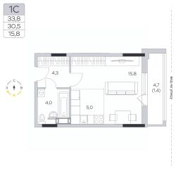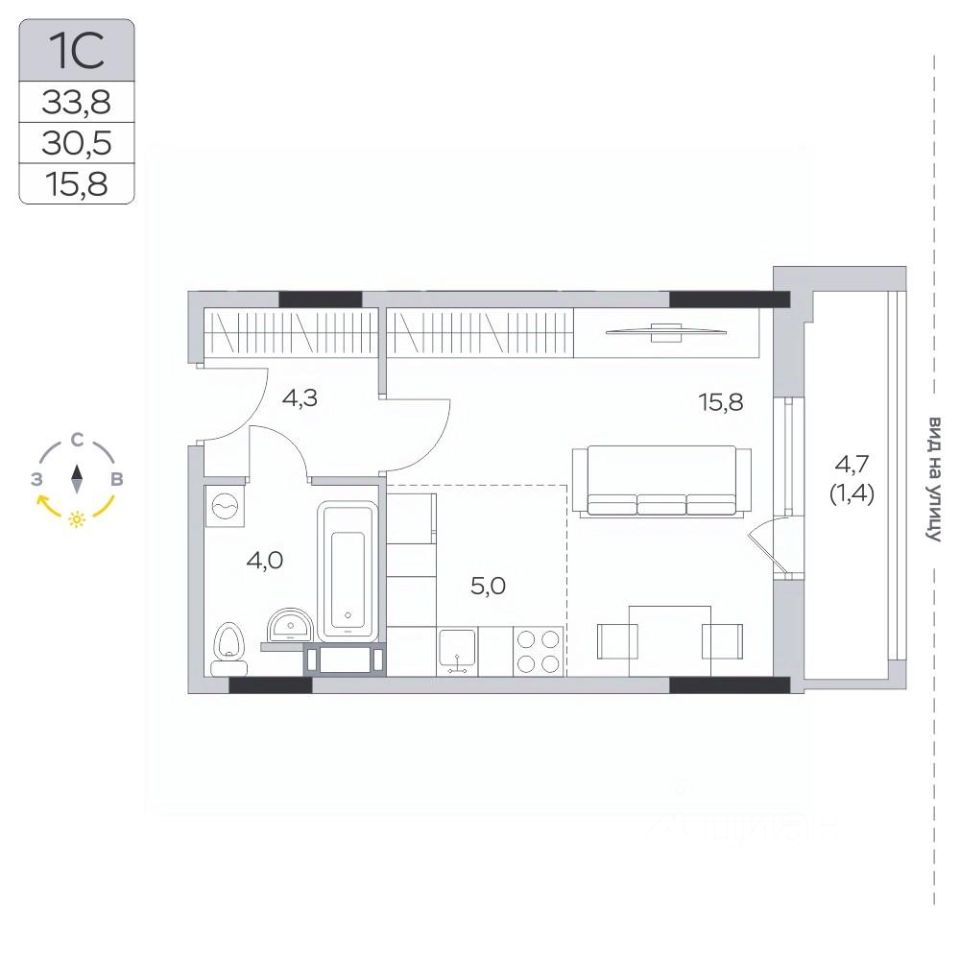 Продаётся студия в сданном доме (Корпус 15), срок сдачи: III-кв. 2024, общей площадью 30.5 кв.м., на 9 этаже.