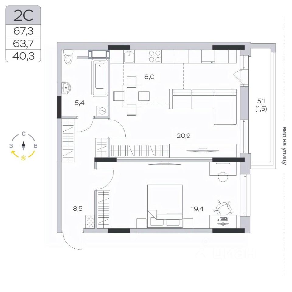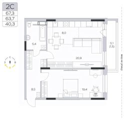 Продаётся 2-комнатная квартира в сданном доме (Корпус 15), срок сдачи: III-кв. 2024, общей площадью 63.8 кв.м., на 3 этаже.