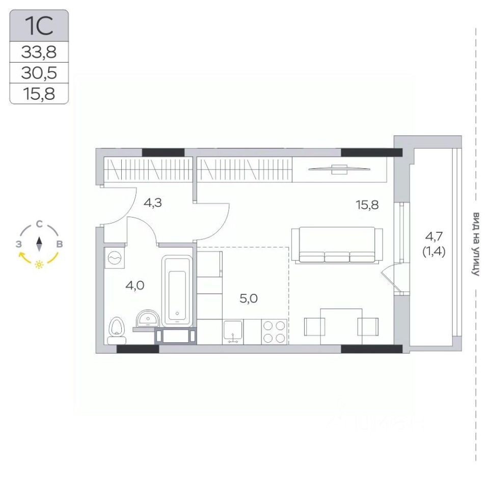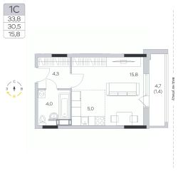 Продаётся студия в сданном доме (Корпус 15), срок сдачи: III-кв. 2024, общей площадью 30.5 кв.м., на 4 этаже.