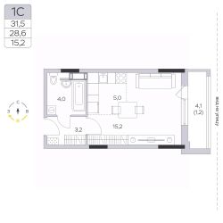 Продаётся студия в сданном доме (Корпус 15), срок сдачи: III-кв. 2024, общей площадью 28.7 кв.м., на 6 этаже.