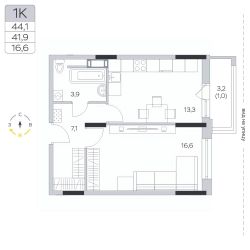 Продаётся 1-комнатная квартира в сданном доме (Корпус 15), срок сдачи: III-кв. 2024, общей площадью 41.8 кв.м., на 8 этаже.