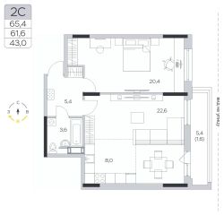 Продаётся 2-комнатная квартира в сданном доме (Корпус 15), срок сдачи: III-кв. 2024, общей площадью 61.2 кв.м., на 9 этаже.