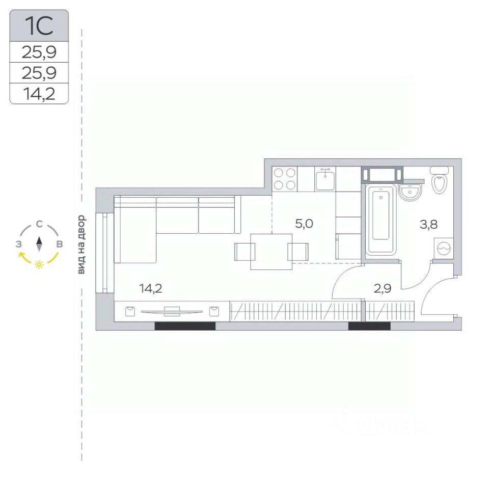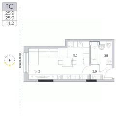 Продаётся студия в сданном доме (Корпус 15), срок сдачи: III-кв. 2024, общей площадью 25.7 кв.м., на 9 этаже.