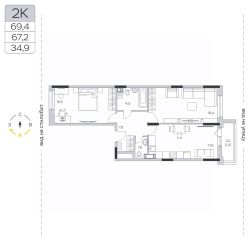 Продаётся 2-комнатная квартира в сданном доме (Корпус 15), срок сдачи: III-кв. 2024, общей площадью 66.7 кв.м., на 4 этаже.