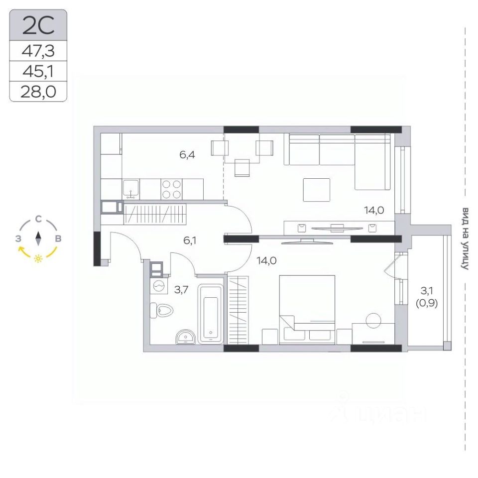 Продаётся 1-комнатная квартира в сданном доме (Корпус 15), срок сдачи: III-кв. 2024, общей площадью 45.6 кв.м., на 6 этаже.