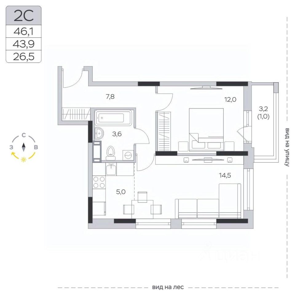 Продаётся 1-комнатная квартира в сданном доме (Корпус 15), срок сдачи: III-кв. 2024, общей площадью 43.9 кв.м., на 8 этаже.