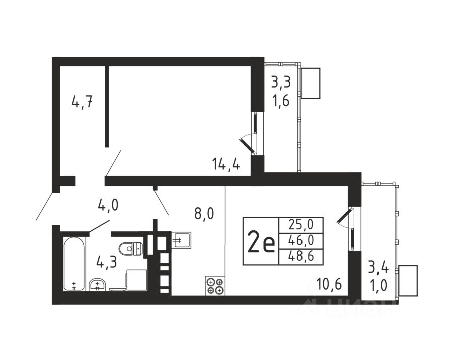 Продаётся 2-комнатная квартира в строящемся доме (Корпус 4), срок сдачи: II-кв. 2026, общей площадью 48.6 кв.м., на 2 этаже.