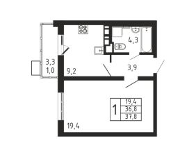 Продаётся 1-комнатная квартира в строящемся доме (Корпус 4), срок сдачи: II-кв. 2026, общей площадью 37.8 кв.м., на 2 этаже.
