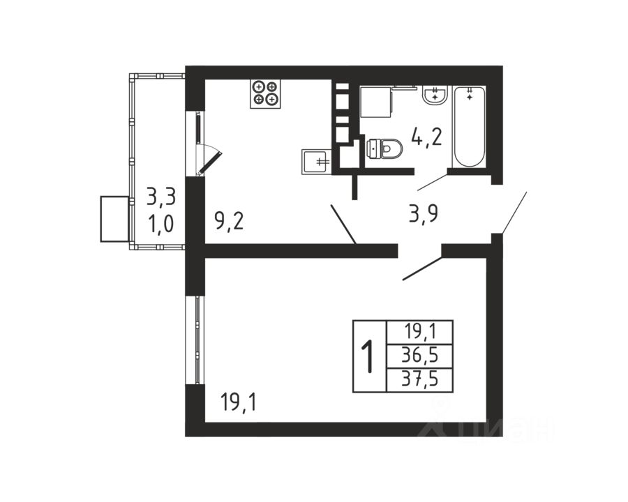 Продаётся 1-комнатная квартира в строящемся доме (Корпус 4), срок сдачи: II-кв. 2026, общей площадью 37.5 кв.м., на 8 этаже.