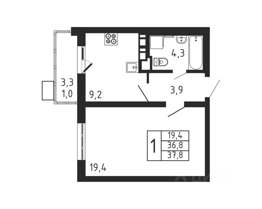 Продаётся 1-комнатная квартира в строящемся доме (Корпус 4), срок сдачи: II-кв. 2026, общей площадью 37.8 кв.м., на 8 этаже.
