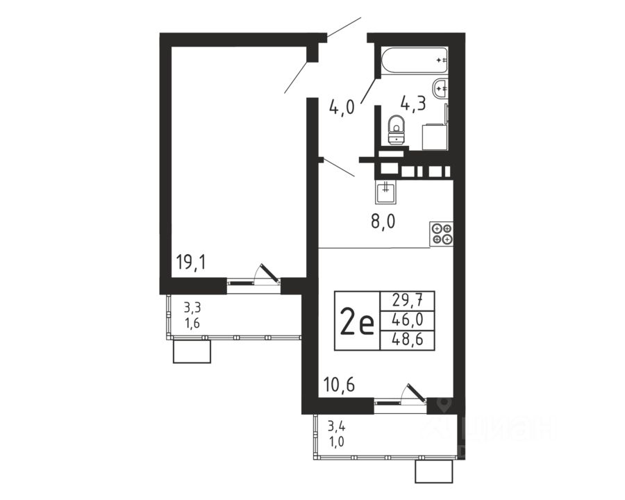 Продаётся 2-комнатная квартира в строящемся доме (Корпус 4), срок сдачи: II-кв. 2026, общей площадью 48.6 кв.м., на 7 этаже.