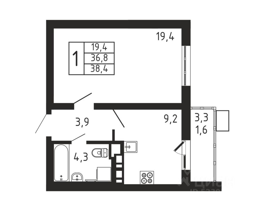 Продаётся 1-комнатная квартира в строящемся доме (Корпус 4), срок сдачи: II-кв. 2026, общей площадью 38.4 кв.м., на 6 этаже.