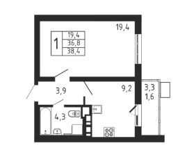 Продаётся 1-комнатная квартира в строящемся доме (Корпус 4), срок сдачи: II-кв. 2026, общей площадью 38.4 кв.м., на 7 этаже.