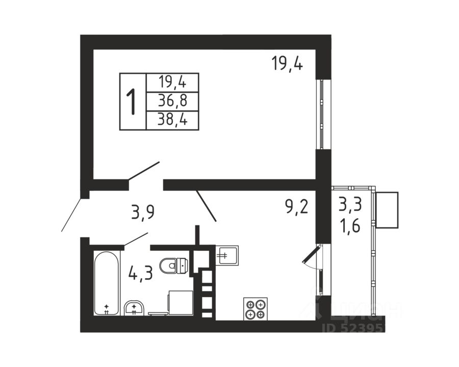 Продаётся 1-комнатная квартира в строящемся доме (Корпус 4), срок сдачи: II-кв. 2026, общей площадью 38.4 кв.м., на 8 этаже.