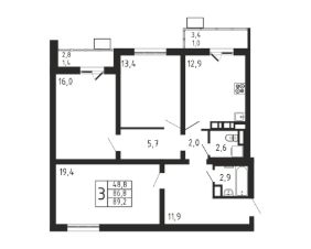 Продаётся 3-комнатная квартира в строящемся доме (Корпус 4), срок сдачи: II-кв. 2026, общей площадью 89.2 кв.м., на 9 этаже.