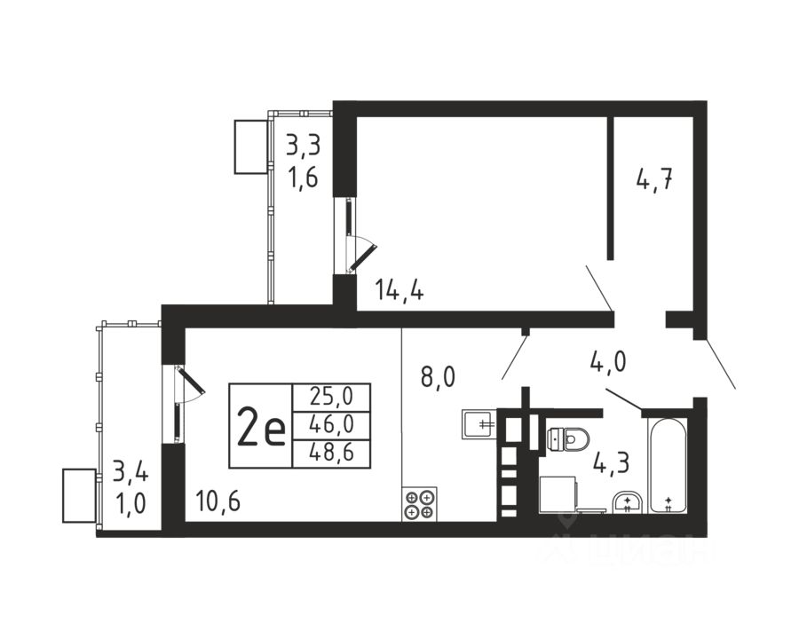 Продаётся 2-комнатная квартира в строящемся доме (Корпус 4), срок сдачи: II-кв. 2026, общей площадью 48.6 кв.м., на 6 этаже.