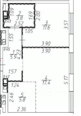 • Комната - 1 изолированная комната 11,6 м2