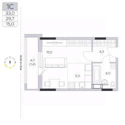 Продаётся студия в сданном доме (Корпус 15), срок сдачи: III-кв. 2024, общей площадью 29.7 кв.м., на 7 этаже.