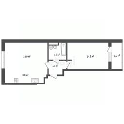 Площадь кухни-гостиной 22,4 кв.м (8кв.м зона готовки и 14,4 гостевая зона)