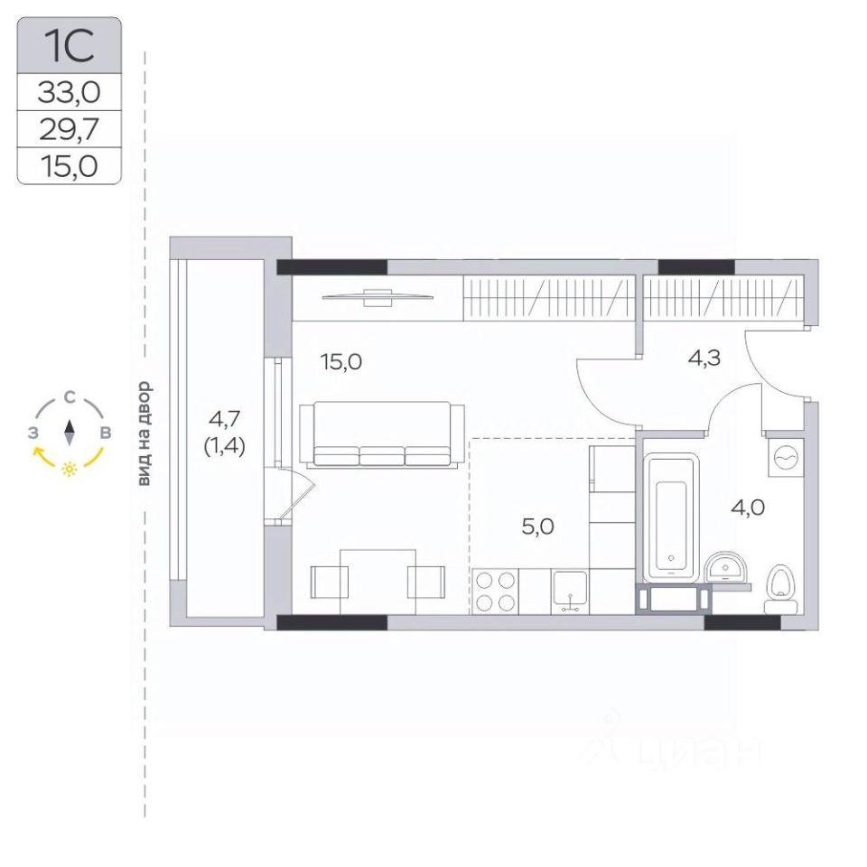 Продаётся студия в сданном доме (Корпус 15), срок сдачи: III-кв. 2024, общей площадью 29.7 кв.м., на 3 этаже.