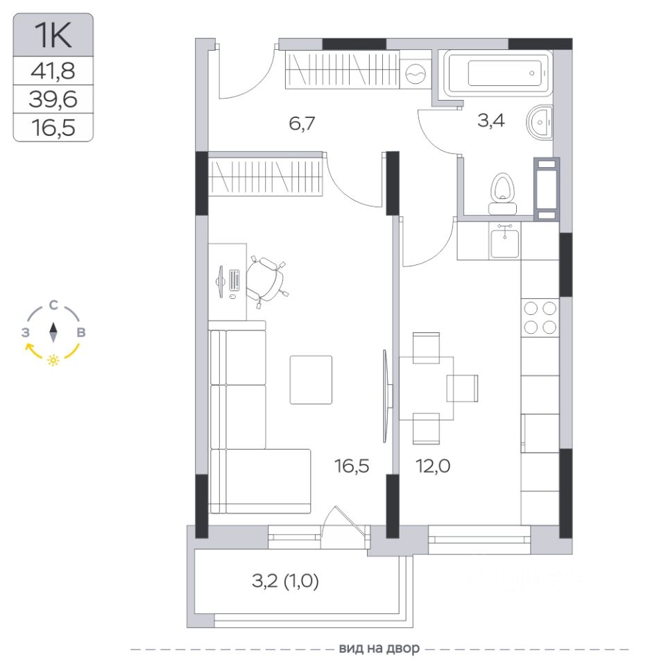 Продаётся 1-комнатная квартира в сданном доме (Корпус 15), срок сдачи: III-кв. 2024, общей площадью 39.6 кв.м., на 7 этаже.