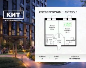 Продаётся 2-к квартира 43.17 кв.м. с чистовой отделкой в ЖК "КИТ2" на 21-м этаже 25 этажного дома.Жилой комплекс "Кит 2" спроектирован в урбанистической концепции "Город в Городе".