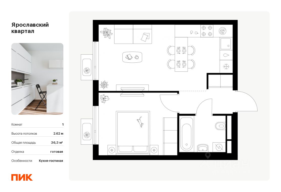 Продаётся 1-комн. квартира площадью 36,3 кв.м на 22 этаже 25 этажного дома (Корпус 2.2, Секция 1) проекта ПИК Ярославский квартал. Светлый просторный подъезд на уровне земли, функциональная планировка, большие окна, c отделкой.