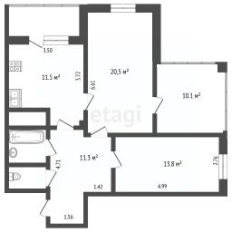 *Планировка включает две изолированные жилые комнаты площадью по 20 кв.м каждая и отдельную гардеробную, что обеспечивает удобное хранение и освобождает жилое пространство.