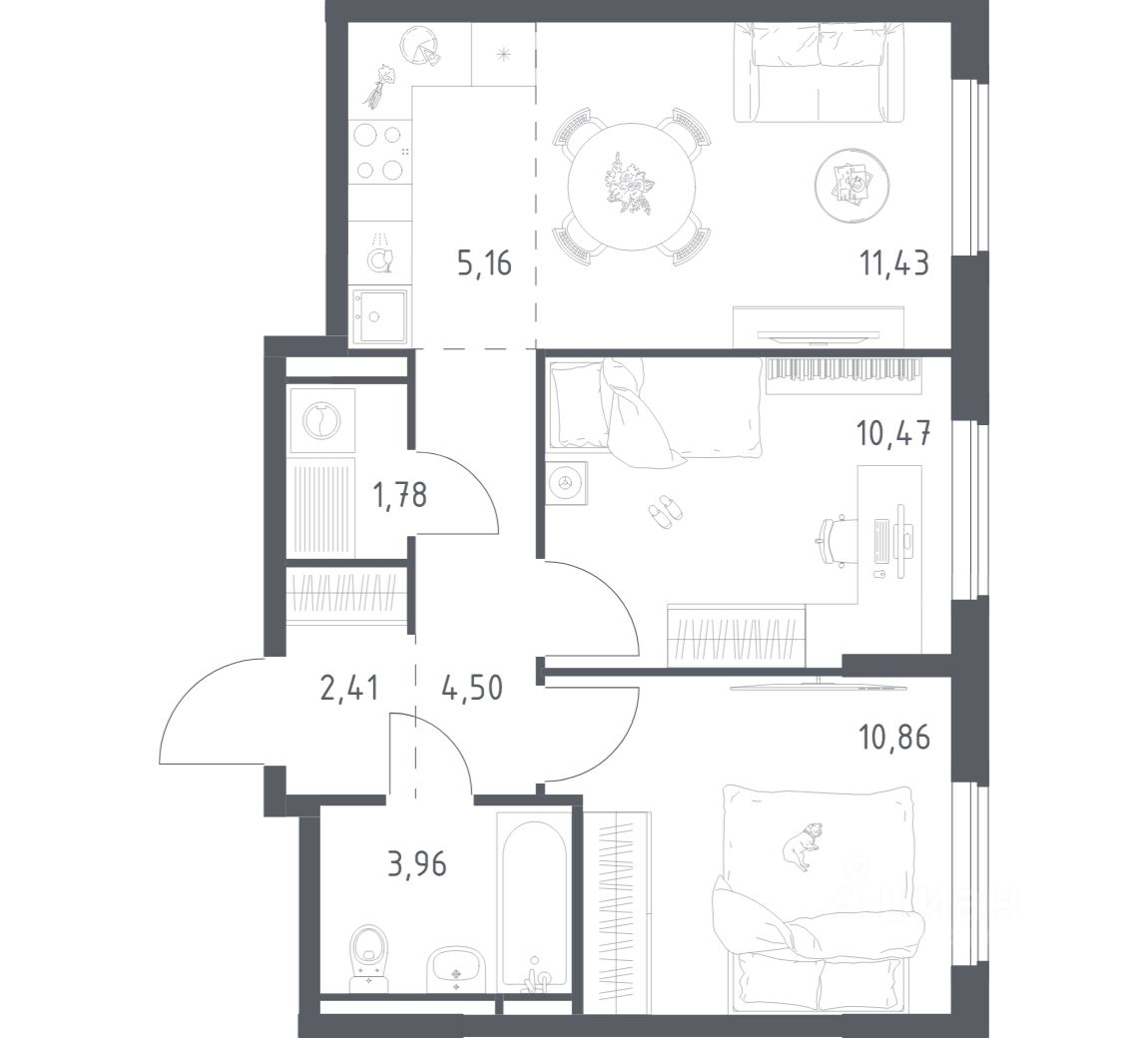 Квартиры комплекса — на выбор: могут быть как с отделкой, так и без. В случае с готовой отделкой уложат напольное покрытие, выровняют стены и поклеят обои в нейтральных тонах, установят потолки, выполнят разводку коммуникаций и подключат сантехнику. Вам также не придётся после заселения менять окна, межкомнатные и входные двери — их качество будет на высоте.