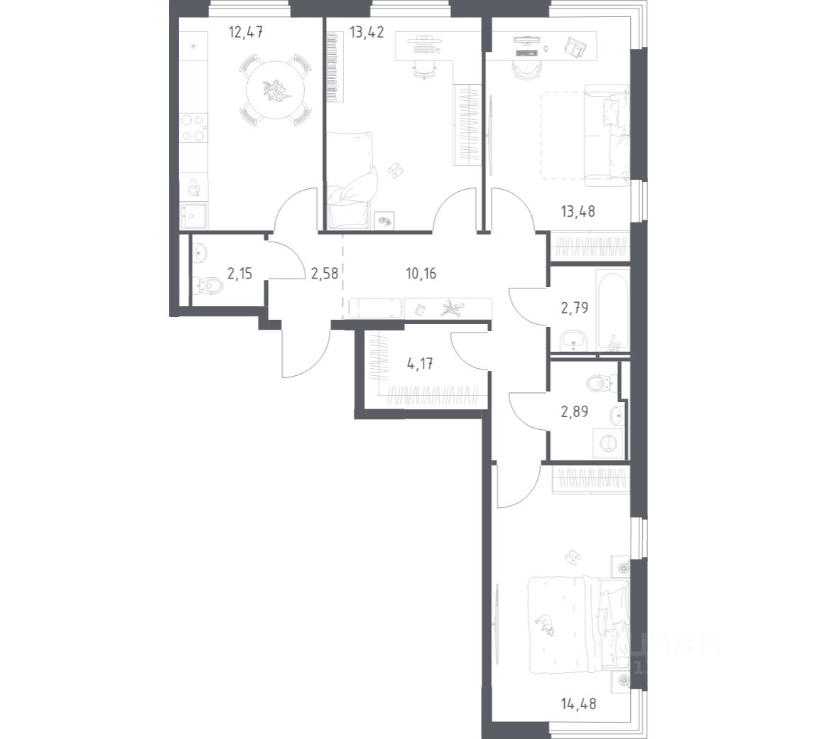Строим кварталы для жизни с заботой о будущем. Предлагается 3-комнатная квартира комфорт-класса площадью 78,59 кв.м в корпусе 6 на 3-м этаже, в жилом комплексе "Мытищи Парк".